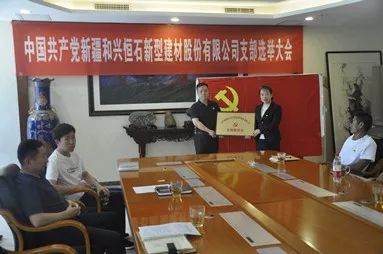 7月23日,新疆和興恒石新型建材股份有限公司召開支部黨員大會暨選舉大會,經濟技術開發區(頭屯河區)高鐵片區黨工委委員、黨政辦主任王艷同志,黨建指導員封雙貴同志及公司全體黨員參加了會議。會議選舉產生了公司第一屆黨支部委員會和支部書記,標志著公司黨支部正式成立。
